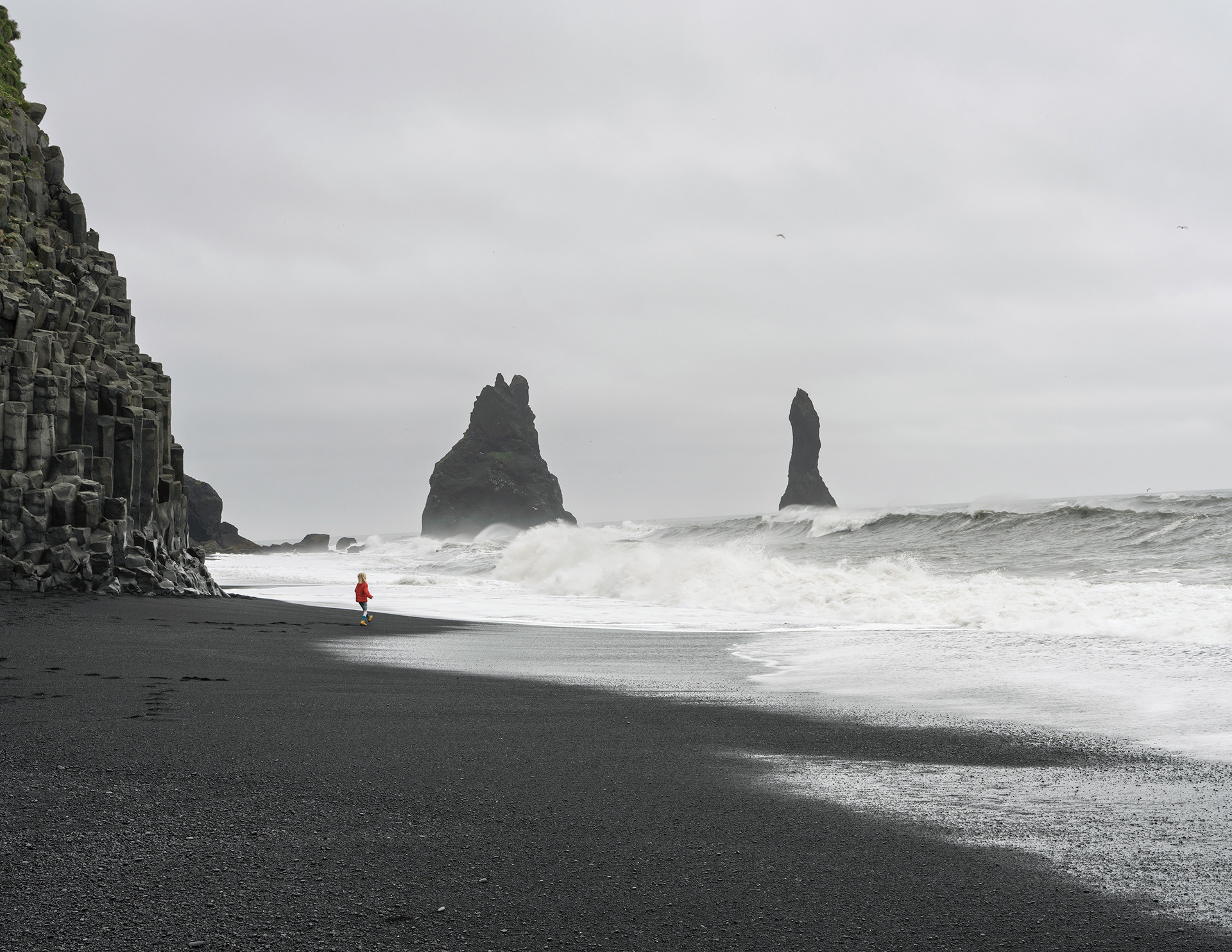 These photographs focus on waterfalls, rivers, shoreline, rock formations, and open landscape, but they are really about the relationship between movement and stillness, softness and hardness, and the scale between the human body and the natural world. For the first time in decades of photographing, I have come to embrace and deliberately include people. I once felt they detracted from the landscape, but I have learned that they can bring a sense of scale, presence, and sometimes surprise. I was interested in the atmosphere of these places as much as the locations themselves: the mist, overcast light, black sand, moss, and volcanic rock all contribute to a mood that feels both quiet and powerful. In each image, I wanted the viewer’s eye to travel through the frame the same way the water moves through the land.